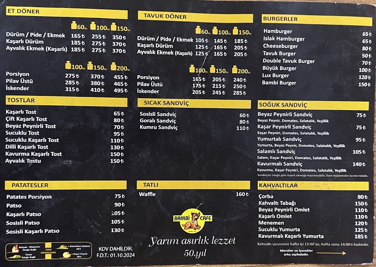 Welcome to Bambi Cafe Mecidiyekoy, a delightful spot in the heart of Istanbul that combines flavor with affordability. Their menu is a haven for those craving comforting fast food with a twist.